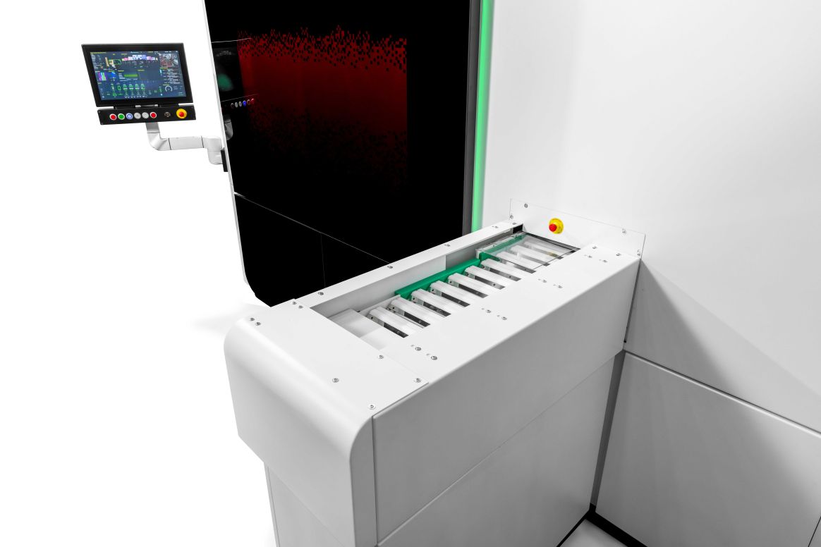 Alle Druckköpfe arbeiten simultan, unabhängig von Länge oder Durchmesser des Containers. Formatänderungen sind ohne Werkzeugwechsel möglich, was die Rüstzeiten deutlich reduziert. - Effiziente Kleinserienproduktion